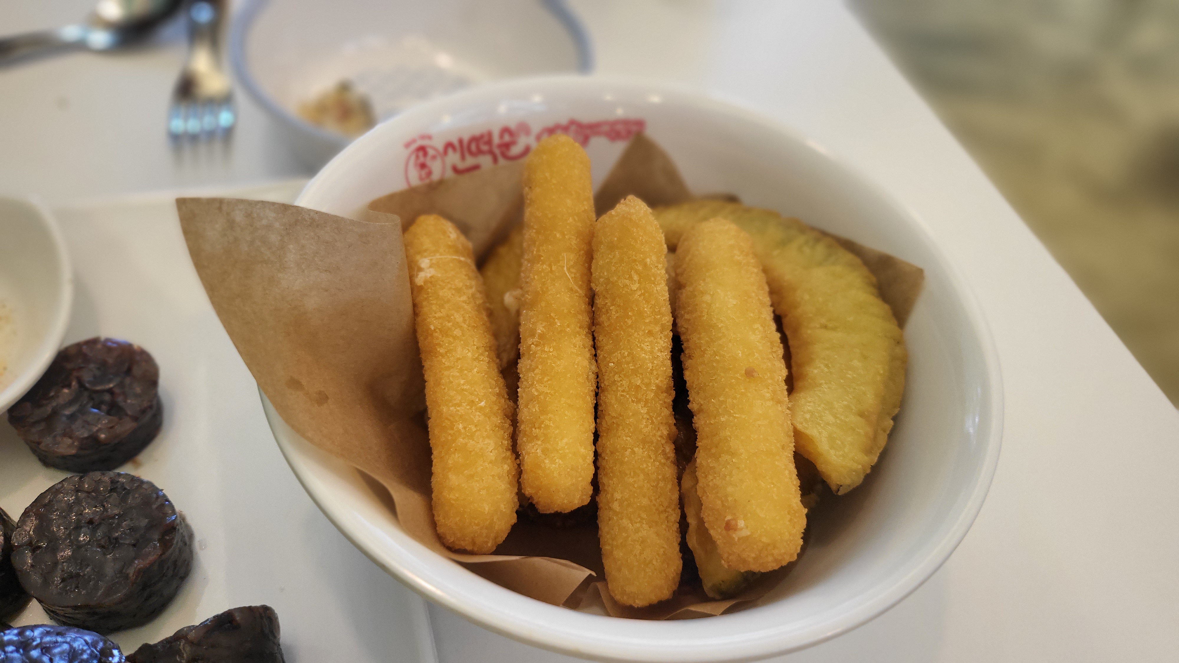 추가주문한 호박튀김, 치즈스틱, 잡채말이