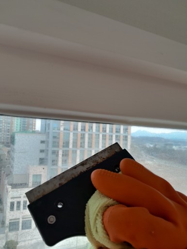유리 세정제 뿌려가면서 도구로