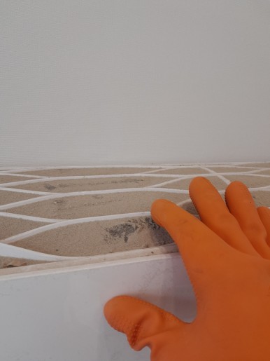 틈새 쌓여 있는 공사 먼지 분진