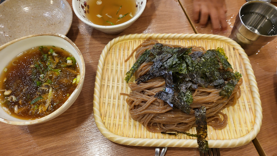 냉메밀은 육수가 시원하고 오동통한 메밀면 정말 잘 어울린다.