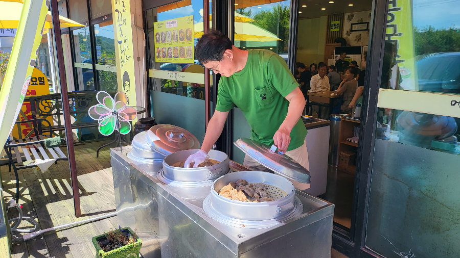 맛도 있지만 개그맨 고명환 씨가 만두도 직접 찌고, 홀에서 고객 응대하는 모습이 신기하다.
