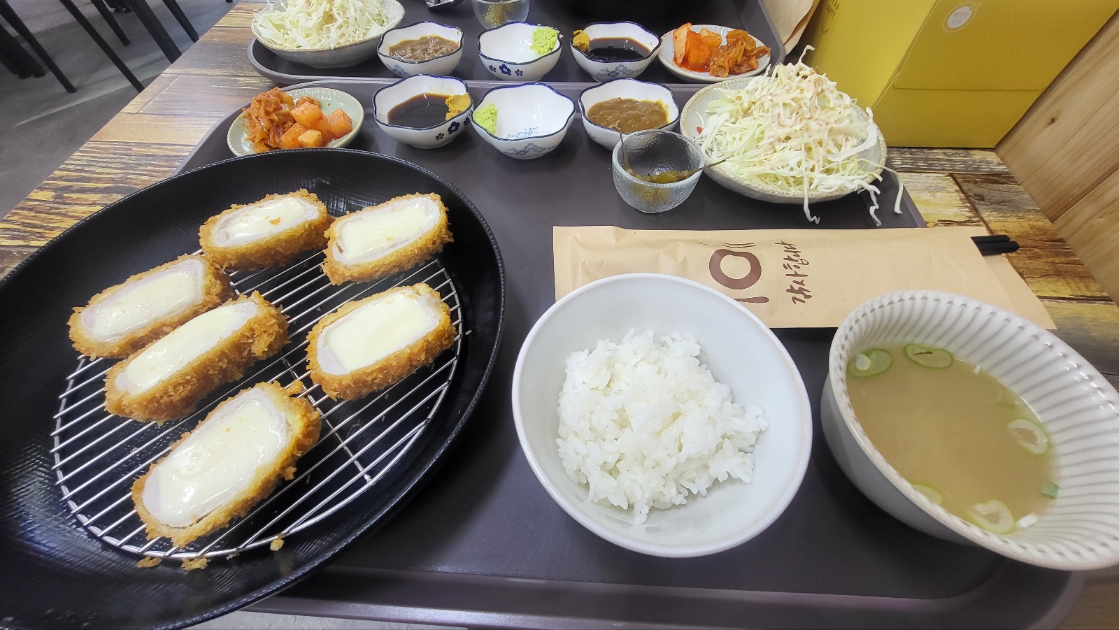 넓은 쟁판에 돈카츠와 미소국