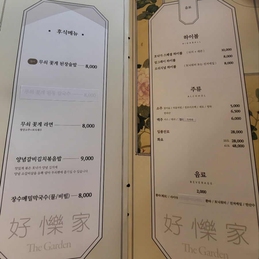 고기가격과 메뉴 가격들